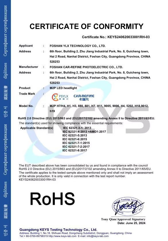 - Luminous standards: Luminous intensity, beam pattern, and color temperature (maximum 6000K) must comply with UN ECE R112/113 standards.